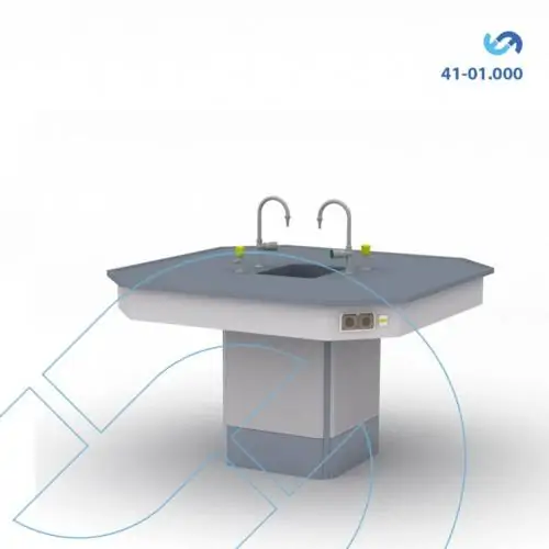 Demonstracinis stalas mokytojui | Eksperimentų demonstravimui | Su integruotu čiaupu, elektros lizdais, papildomais praustuvais |